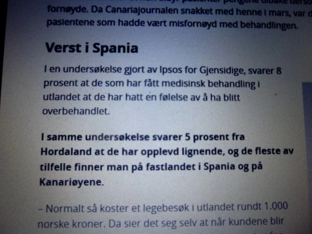 I en Norsk tidning i dag står det om bedrägeri for sjukvård i flera semester länd ; där Spanien är