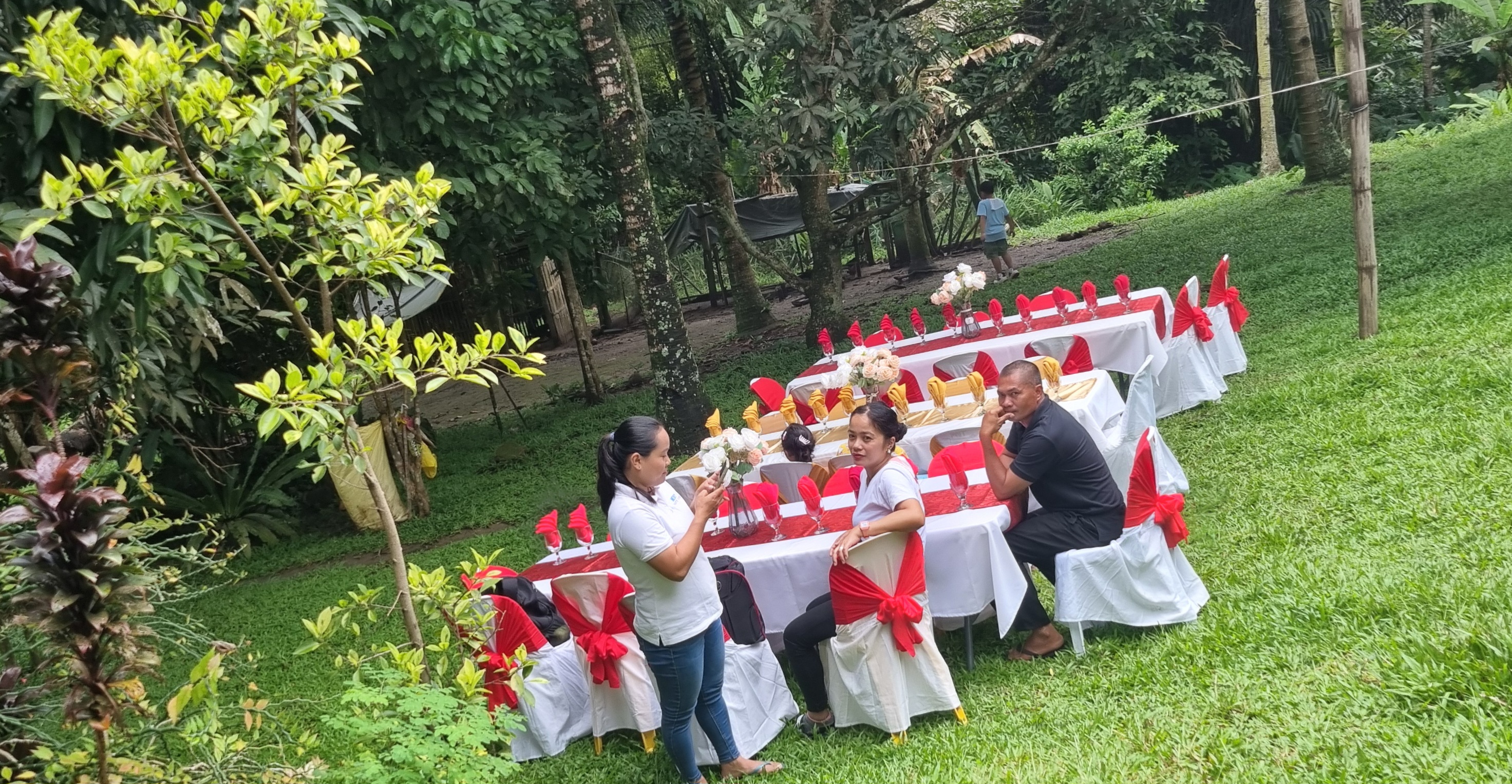 Det var dukade bord lite här och där.