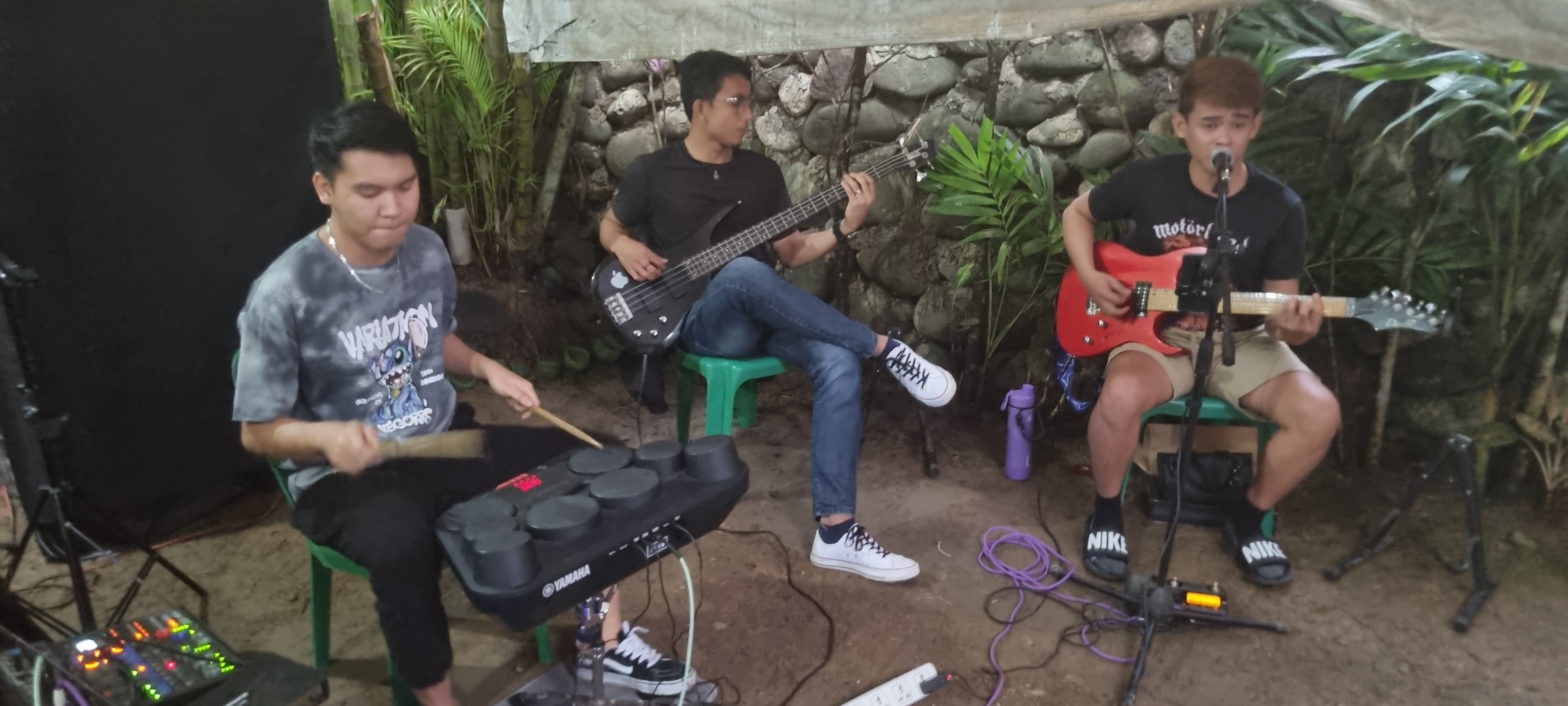 Det var förberett med massor av öl och mat och levande musik.