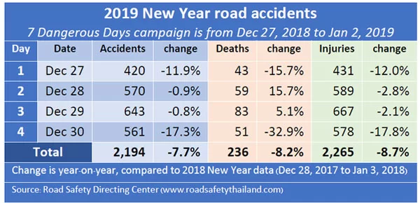 Nu är det 236 döda och 2265 skadade i 2194 inrapporterade olyckor.