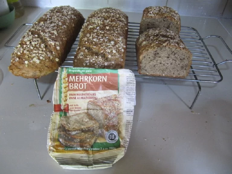 Beställde färdigblandade mjölpåsar från Gourmet Plaza i Bangkok. Det finns hur mycket tid som helst att slå ihjäl så idag blev det brödbak. Värma vatten till 48-49 grader blanda ihop och knåda 10-15 minuter, fy tusan vad tråkigt det är att knåda. Nu får jag på att lära mig tyska för intruktionerna på påsen är på tyska, franska och italienska. Tack google.